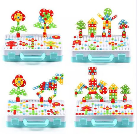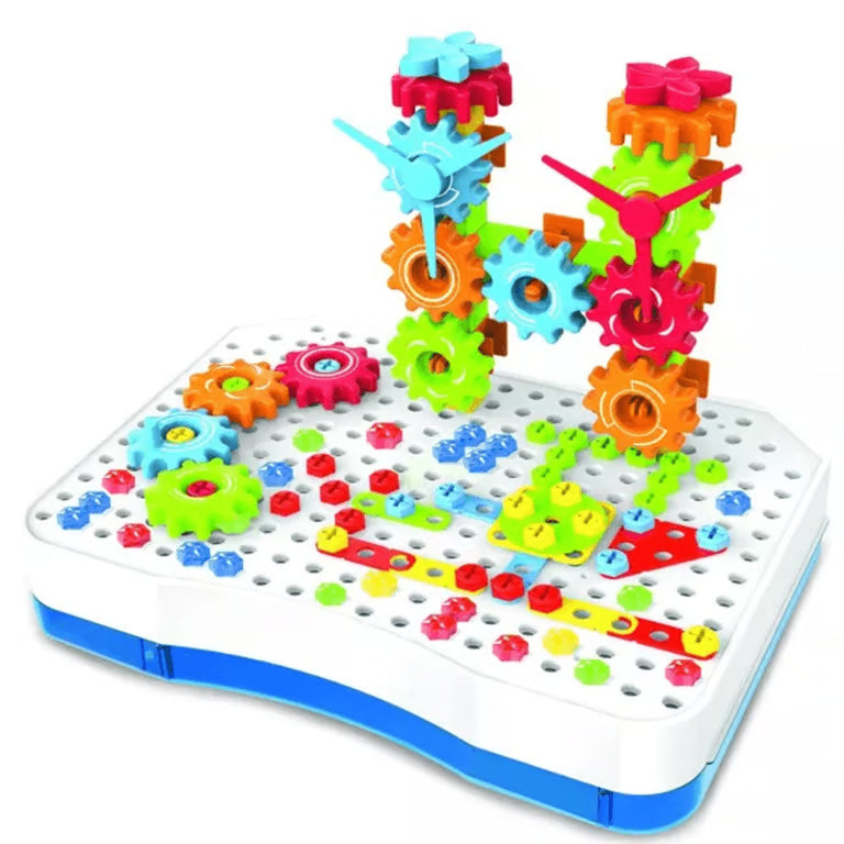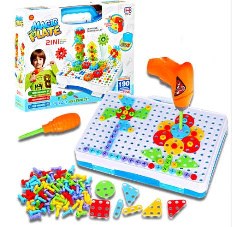 2-ان-1 میجک پلیٹ تعمیراتی کھلونا سیٹ - الیکٹرک ڈرل کے ساتھ 194 ٹکڑوں کی تخلیقی بلڈنگ کٹ