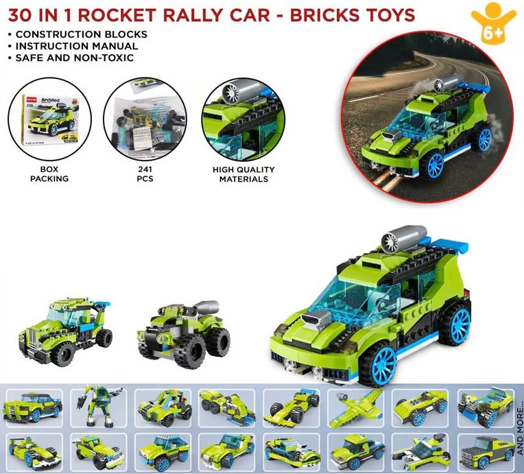 30-in-1 ریلی کار بلڈنگ بلاکس سیٹ - 241 ٹکڑوں کا تعمیراتی کھلونا 6+ بچوں کے لیے - 3128