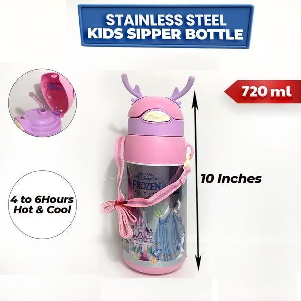 سٹینلیس سٹیل کڈز سیپر بوتل 720 ملی لٹر - اسٹرا اور پٹے کے ساتھ موصل پانی کی بوتل